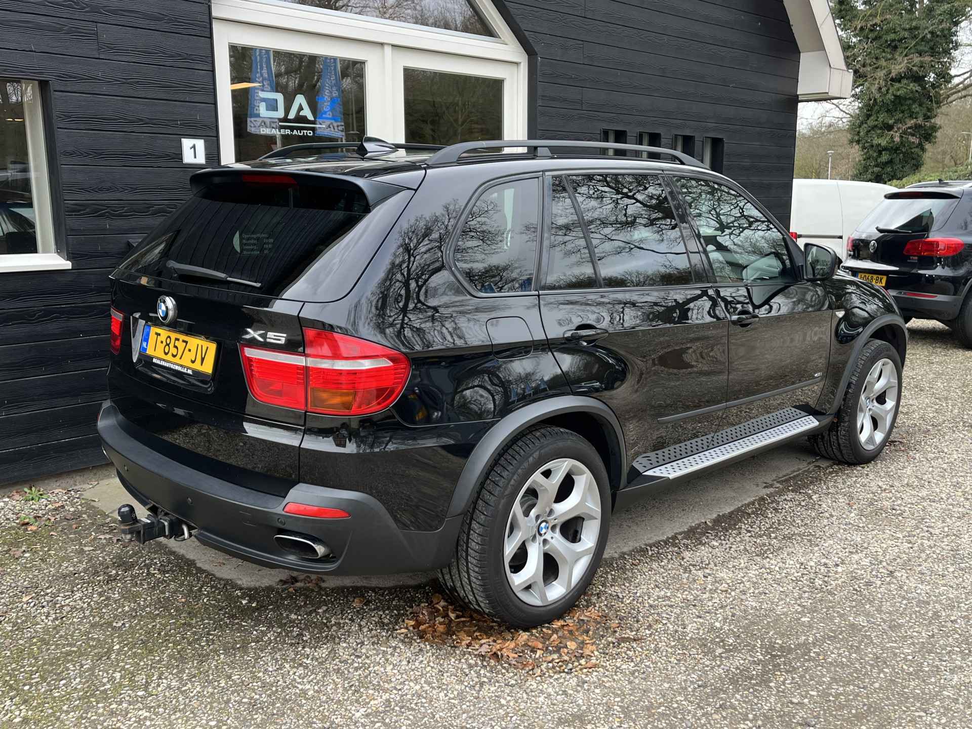Als je gaat voor kwaliteit zonder compromis, dan is deze BMW X5 een auto voor jou. De aandrijving wordt verzorgd door een achtcilinder benzinemotor en een automatische transmissie. Zak weg in het lederen interieur en geniet van de lichte, ruime ervaring van het elektrisch bediende glazen panorama dak. En zeiden we ruim? Dat geldt dan zeker ook voor de derde zitrij! Je past de stoelen moeiteloos aan, ze zijn elektrisch in te stellen en hebben bovendien een geheugen. Ook de passagiers achterin ervaren het ultieme comfort, dankzij de verwarmde achterbank. Met de krachtige xenonverlichting heb jij optimaal zicht in het donker. Bij de zeer complete uitrusting van deze auto behoren ook 20 inch lichtmetalen velgen en sportonderstel.