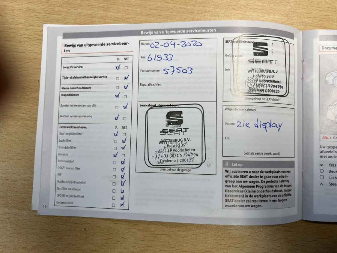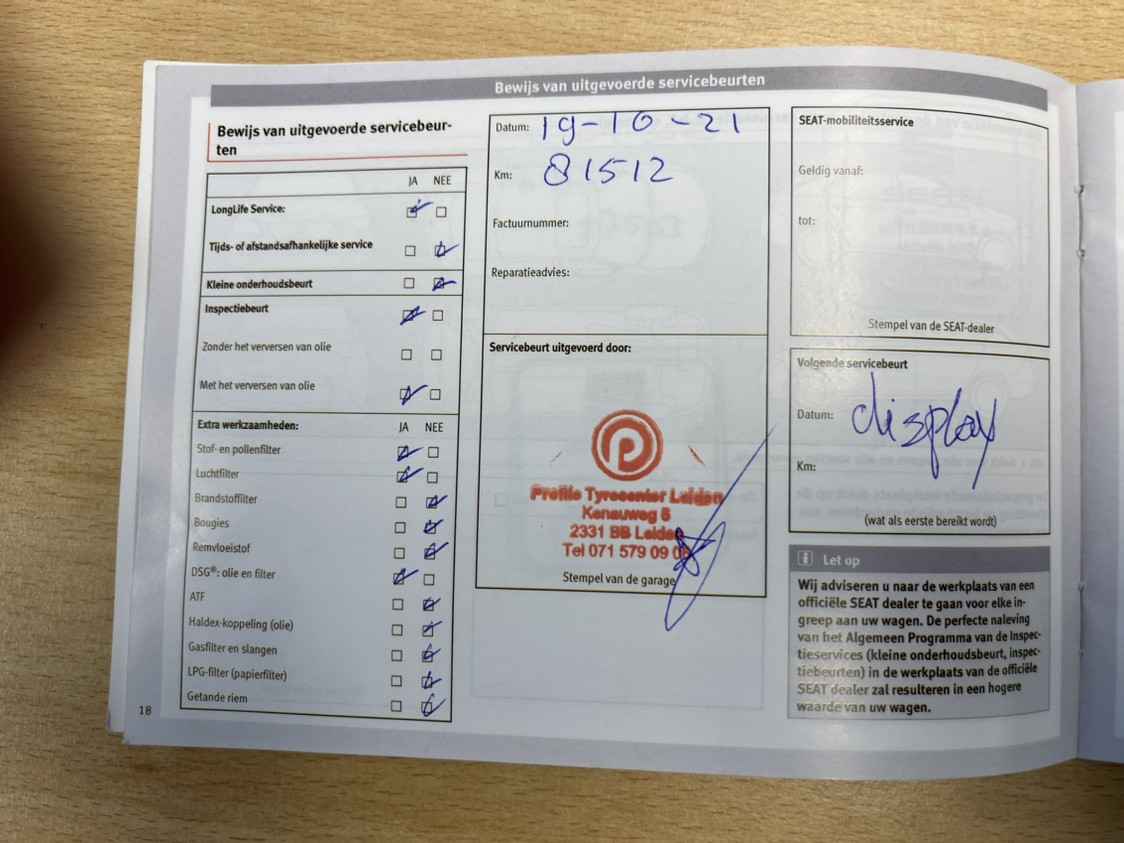 Dat de kilometerstand in orde is, blijkt uit het meegeleverde tellerrapport van Nationale Autopas. Wij kunnen ons goed voorstellen dat je deze SEAT wilt aanschaffen. Wacht daar dan niet mee en reserveer hem nu direct. Dan nemen wij zo snel mogelijk contact met je op om de aflevering te bespreken.